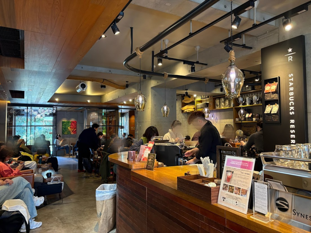 くつろぐをコンセプトにしていることから、普通のスタバよりも一席の”ゆとり”が多い。